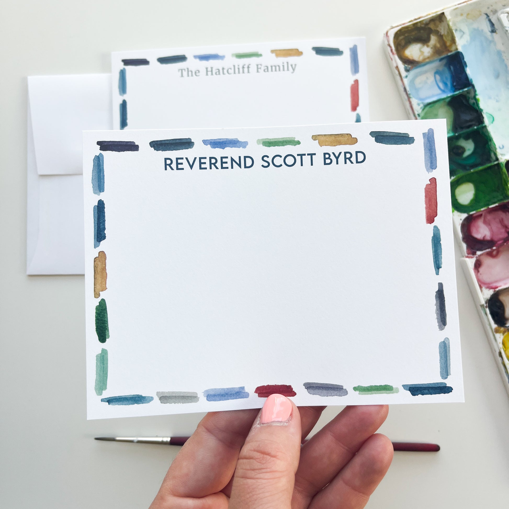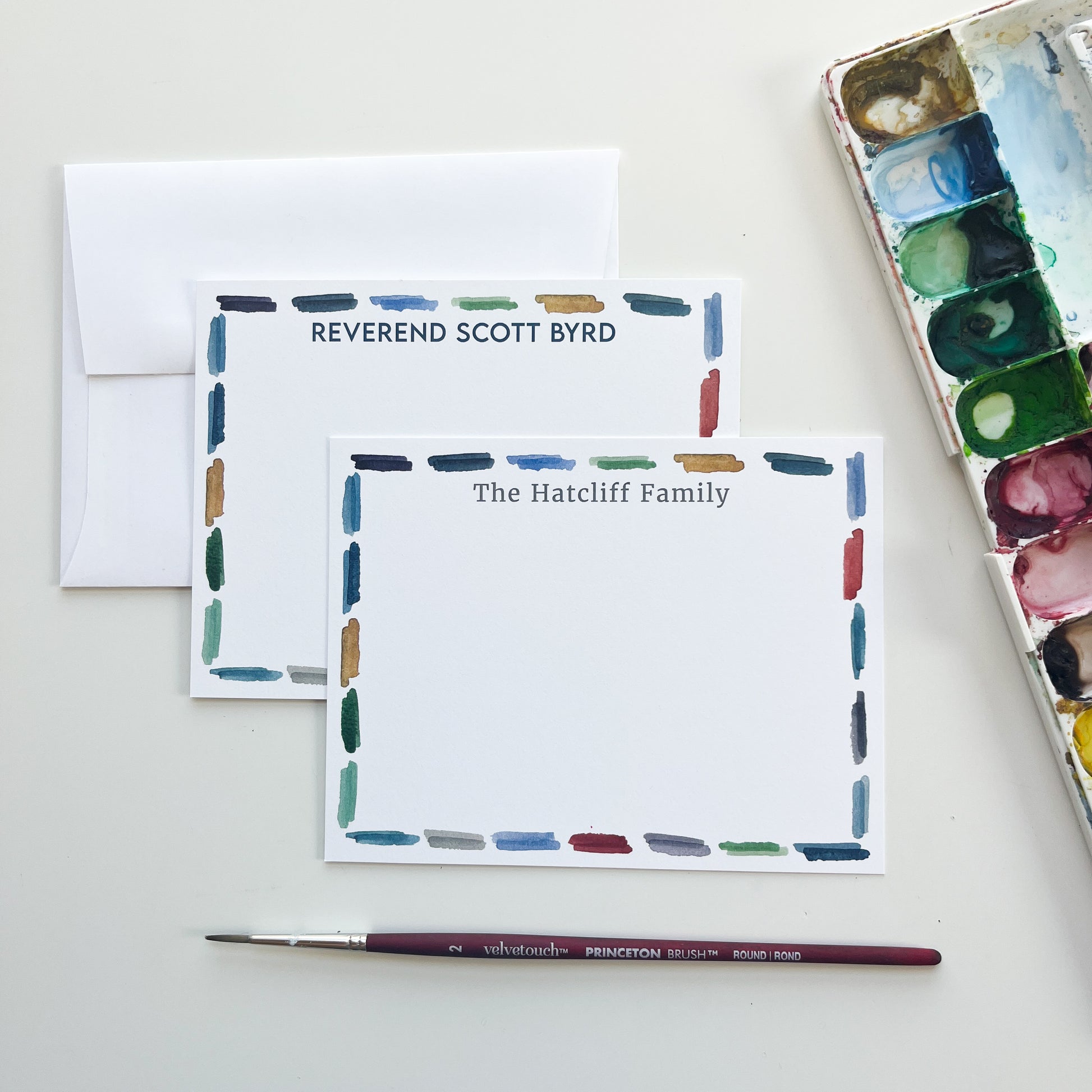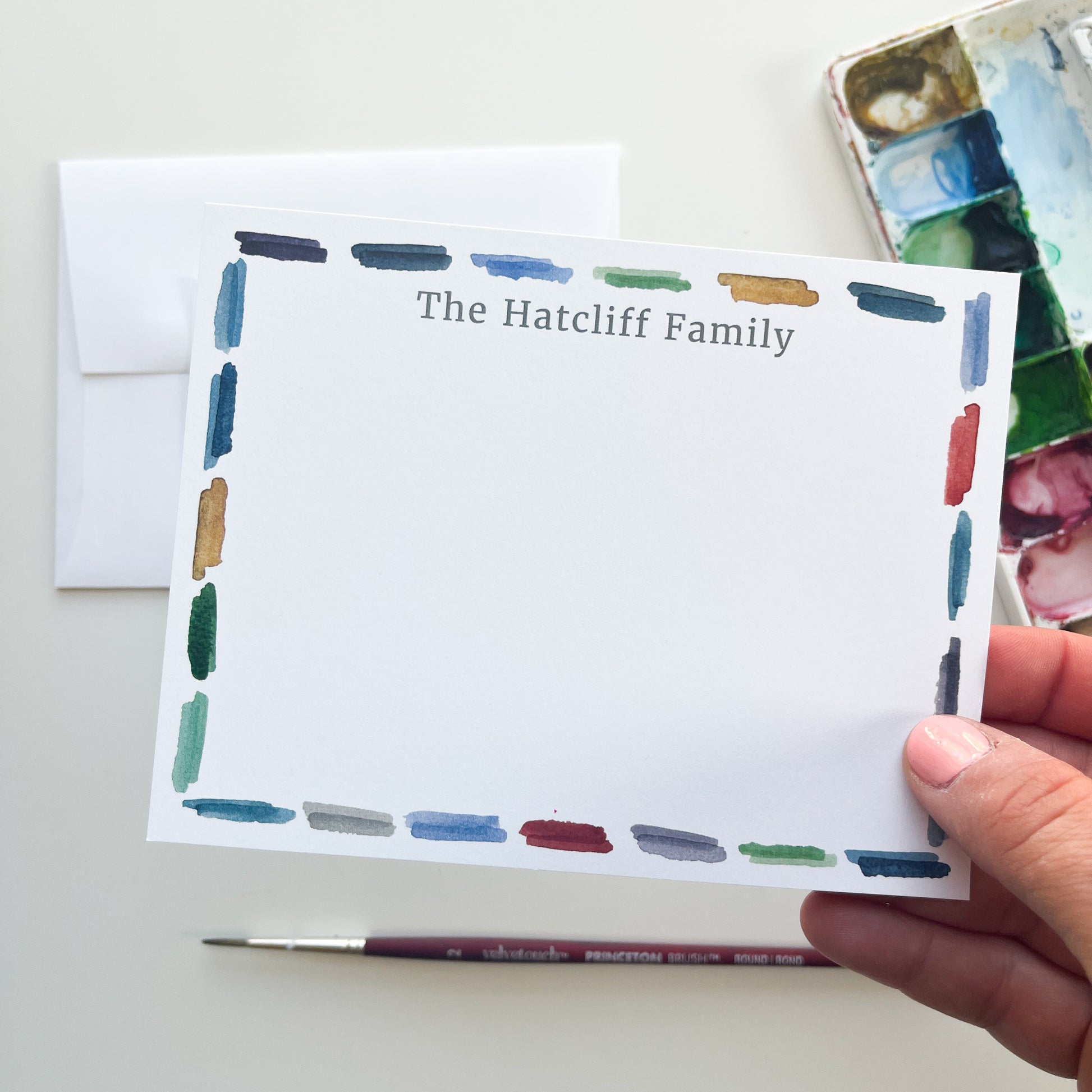 This is a set of 10 folded note cards and envelopes featuring my original Shadow Stripes watercolor design and the name of your choice. Envelopes included.