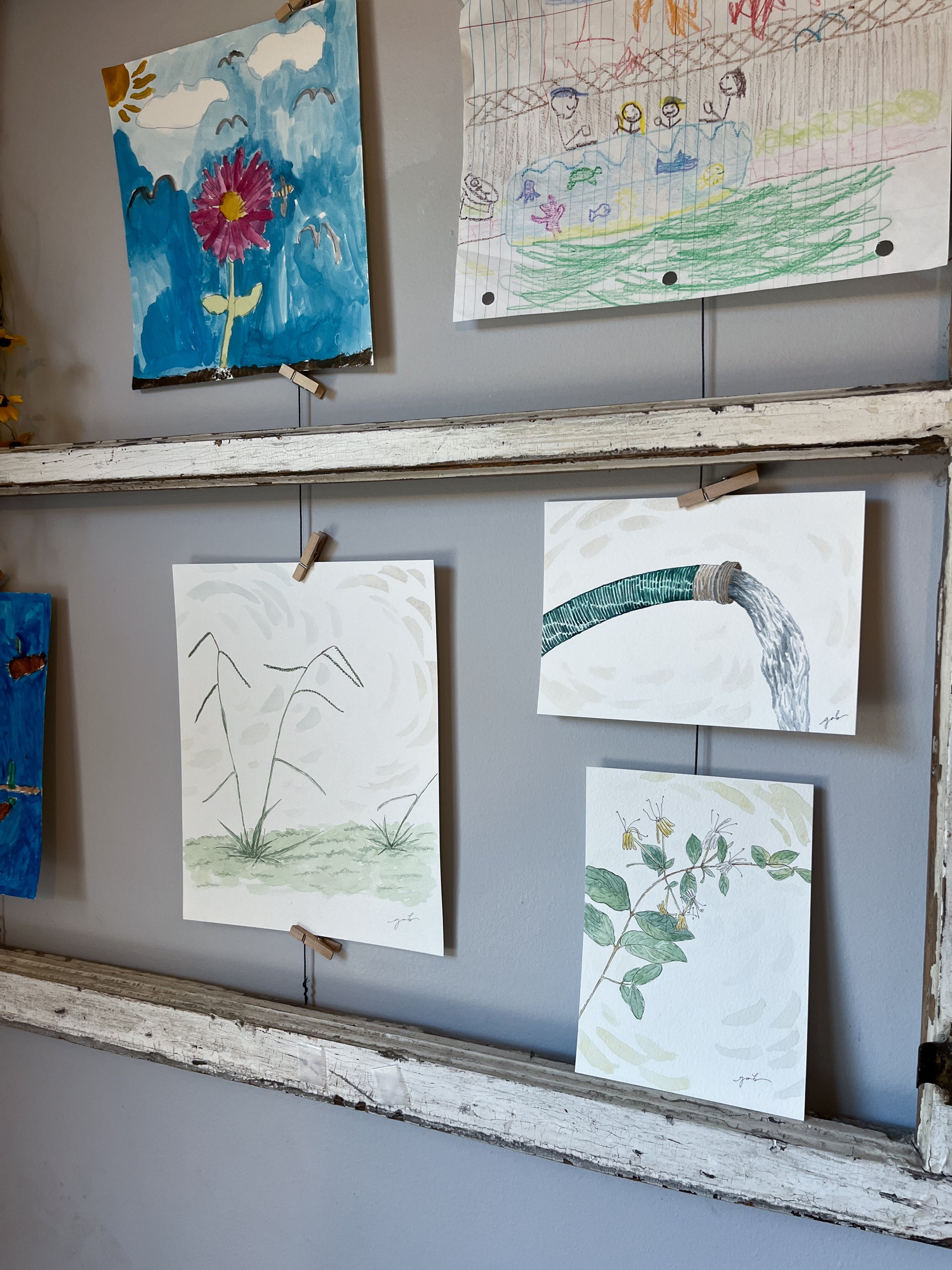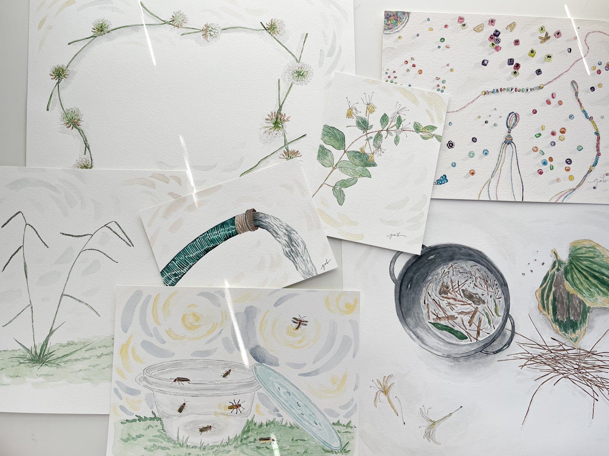 5x7 original watercolor painting of a honeysuckle branch in bloom. Can't you just smell and taste it as we speak?