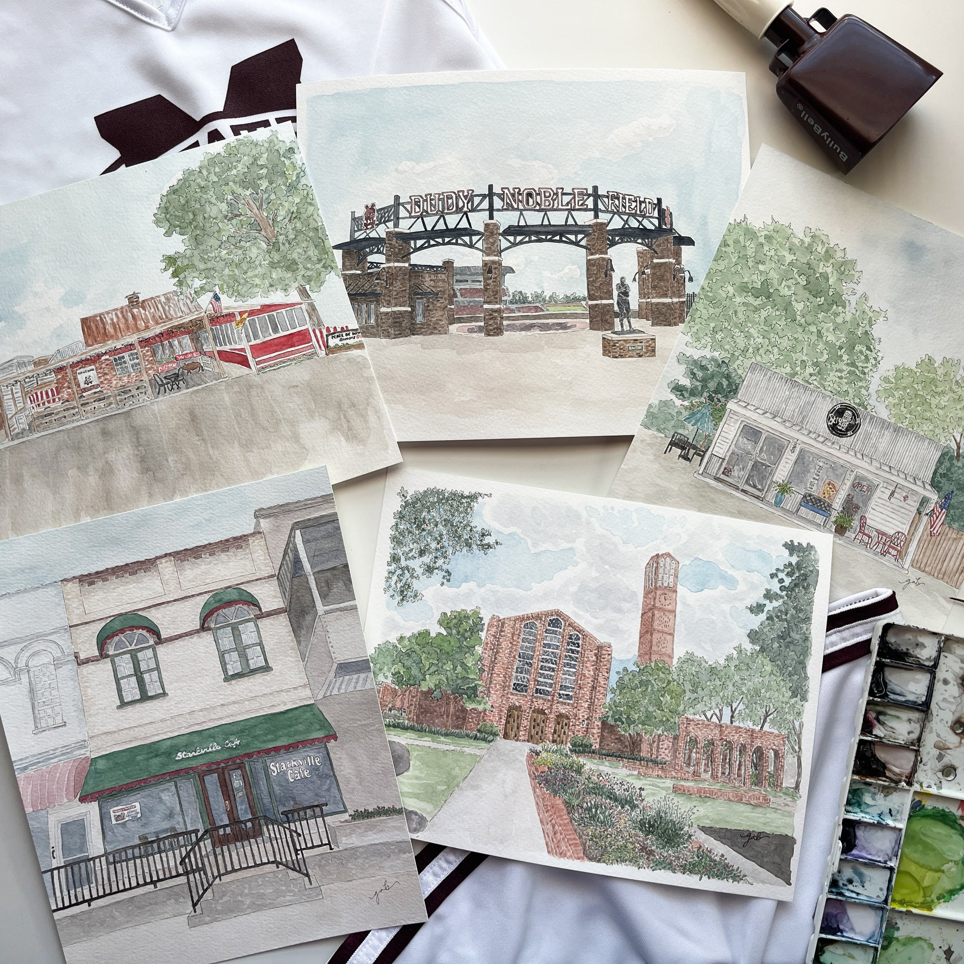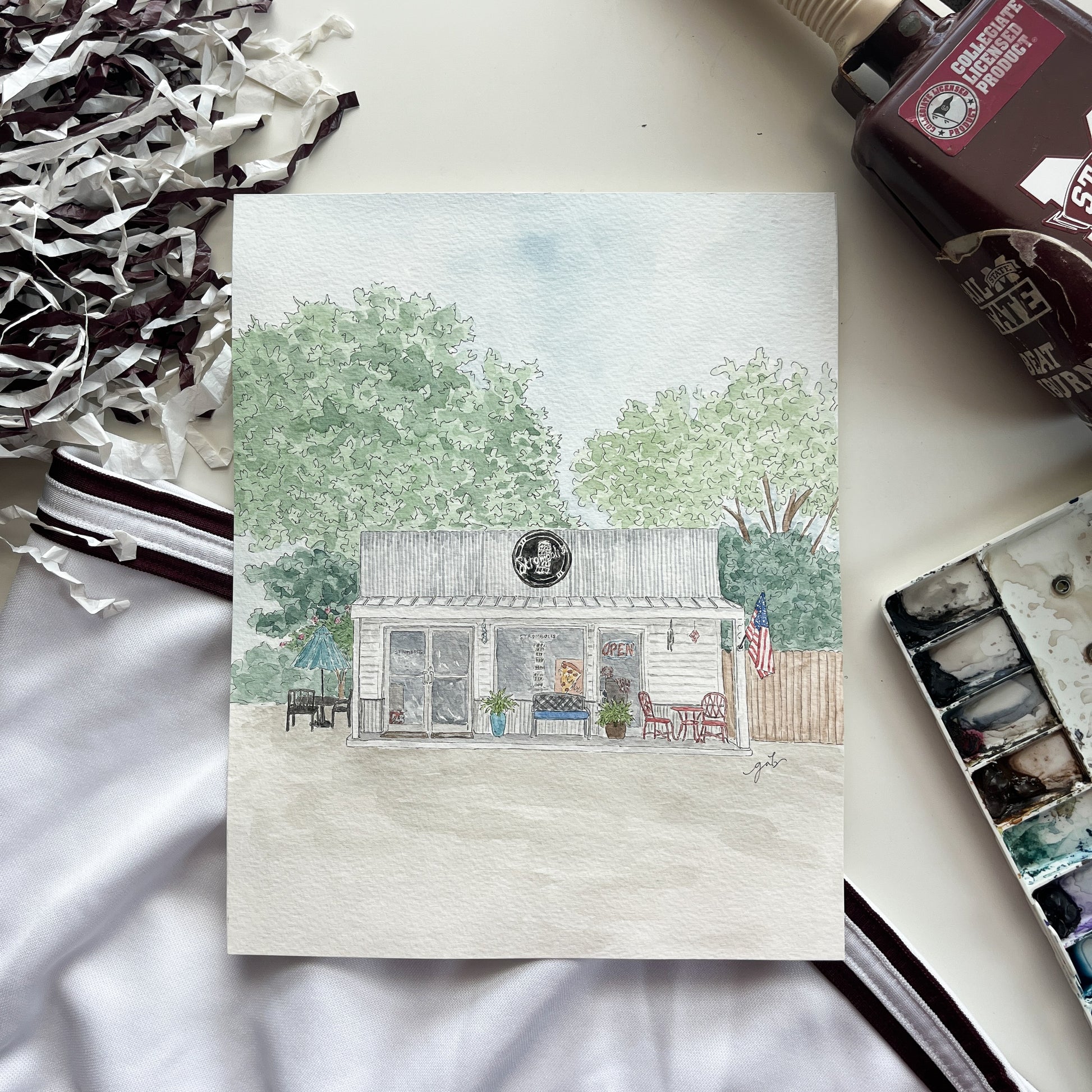 8x10 original watercolor painting of the ever delicious Stromboli's in Starkville, MS.
