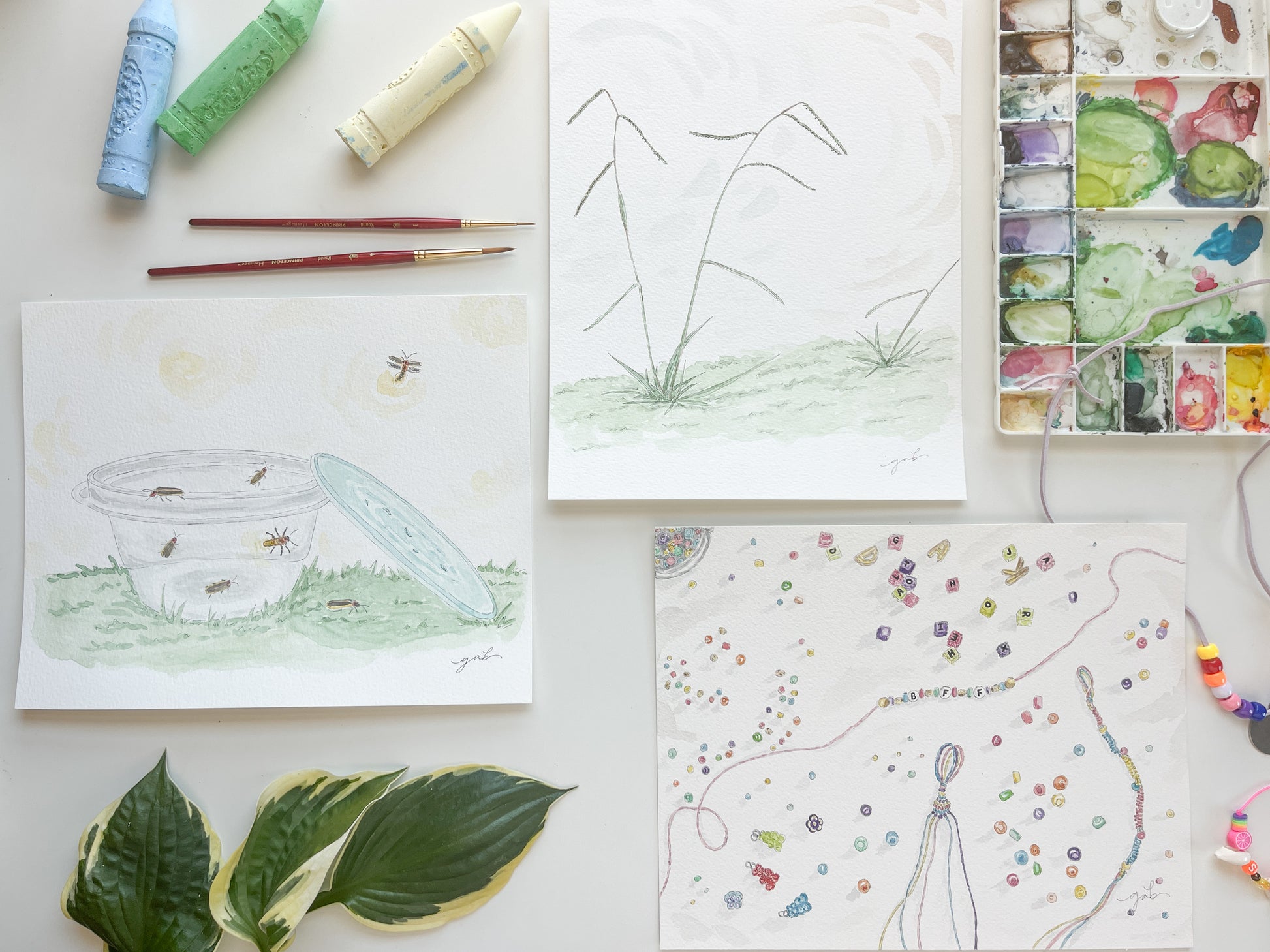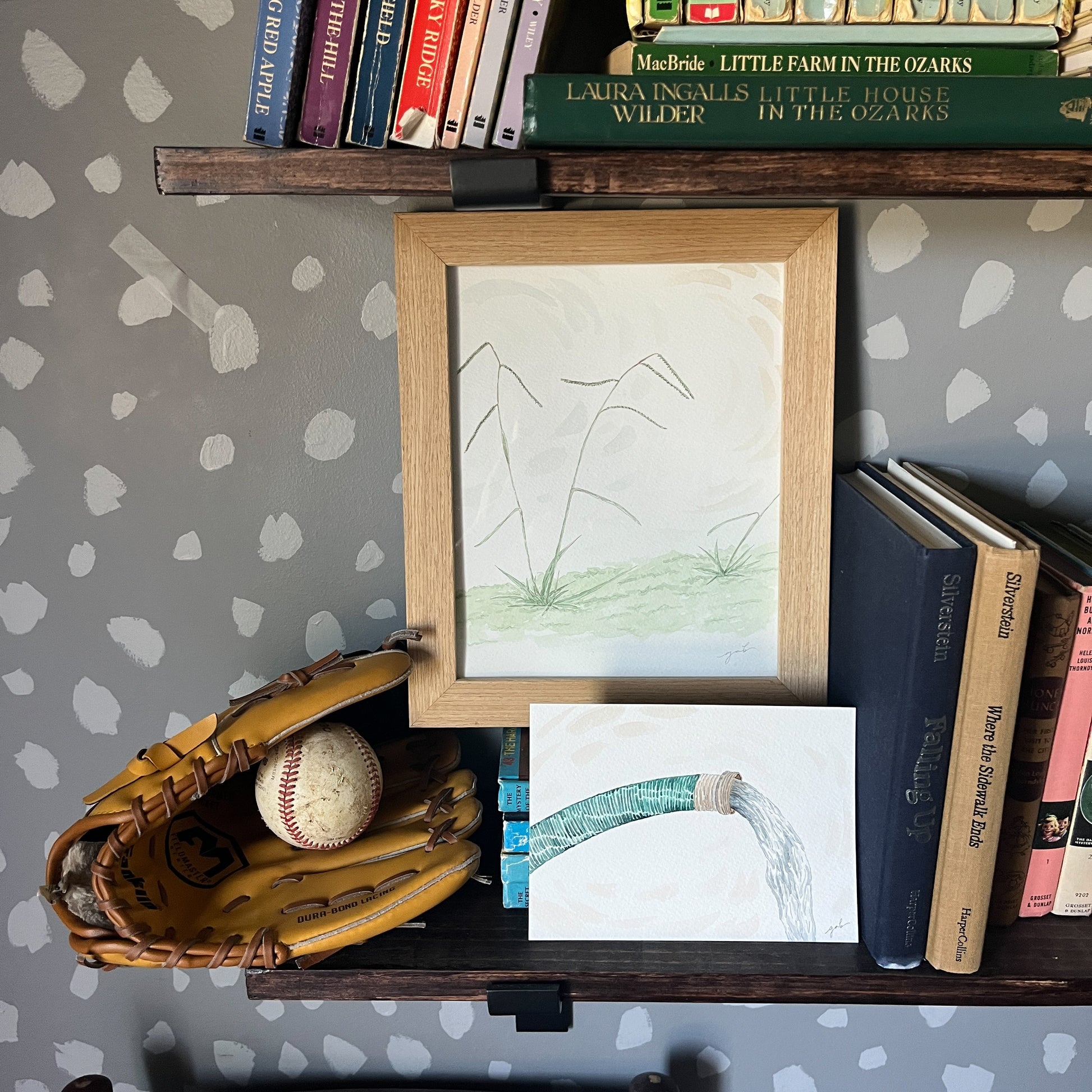 8x10 original watercolor painting of those weed grasses that so often grow in the South and provide minutes (surely not hours) of entertainment for kids and adults alike - there's nothing quite like plucking all of the green seeds and little black feathery things of of these tall stalks!