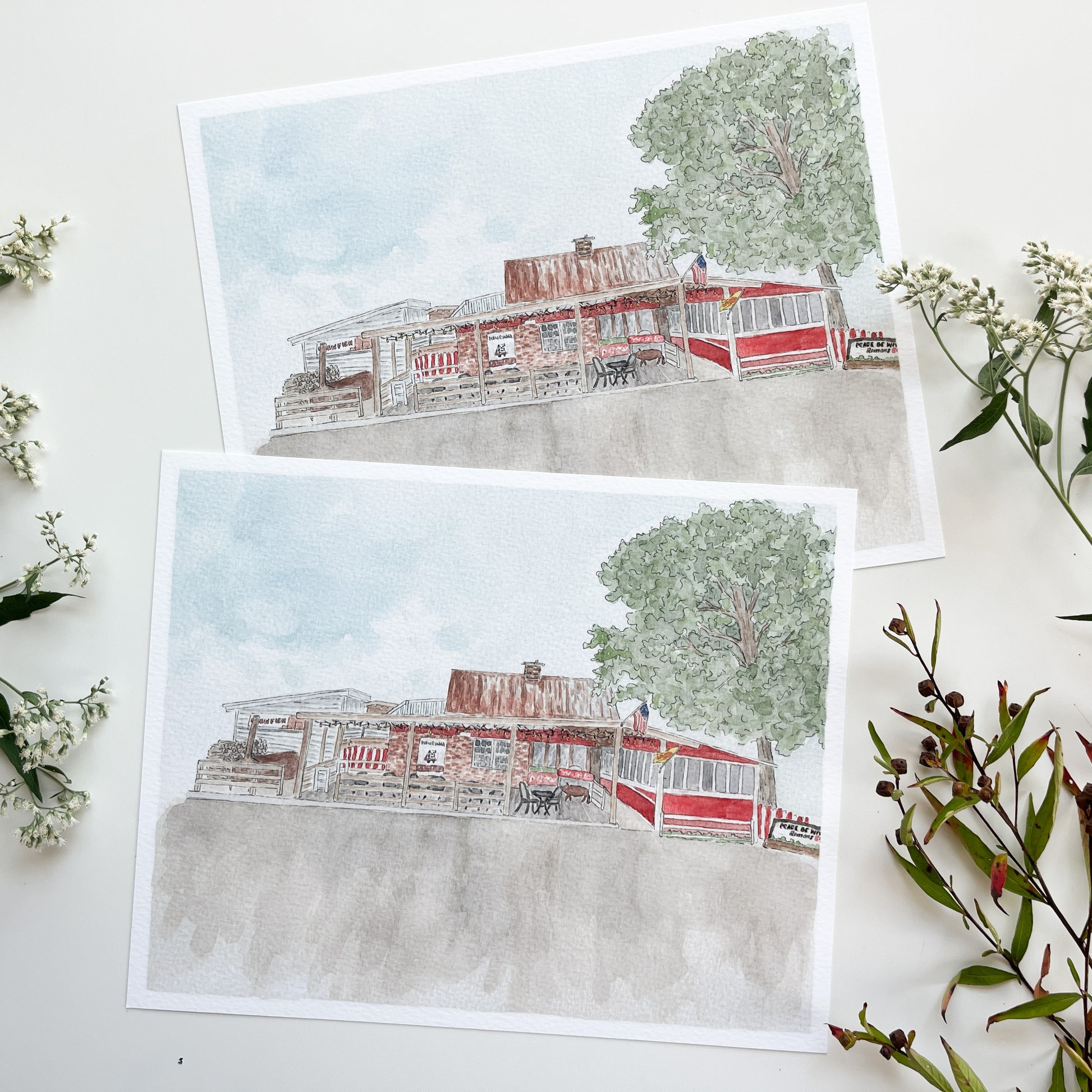 This is an 8x10 original watercolor painting of The Little Dooey, an iconic Starkville, MS institution.